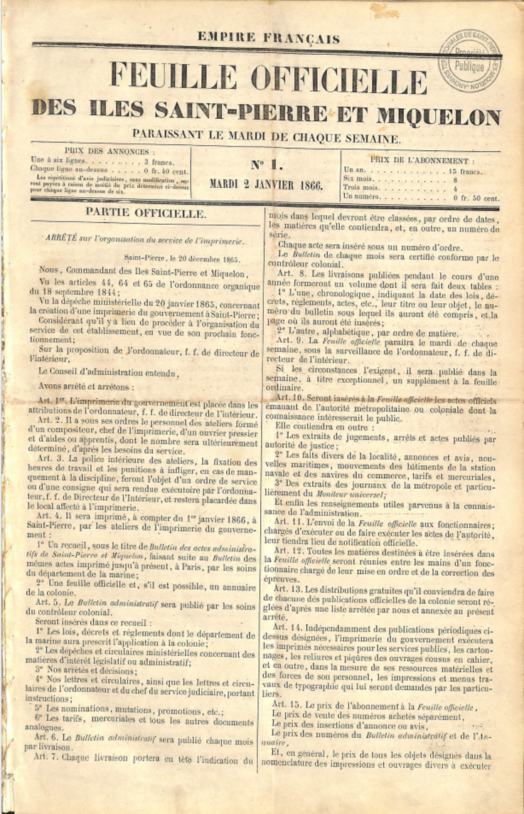 Retrouvez en ligne les 5 premières années de l'hebdomadaire "La Feuille Officielle des îles Saint-Pierre et Miquelon" !